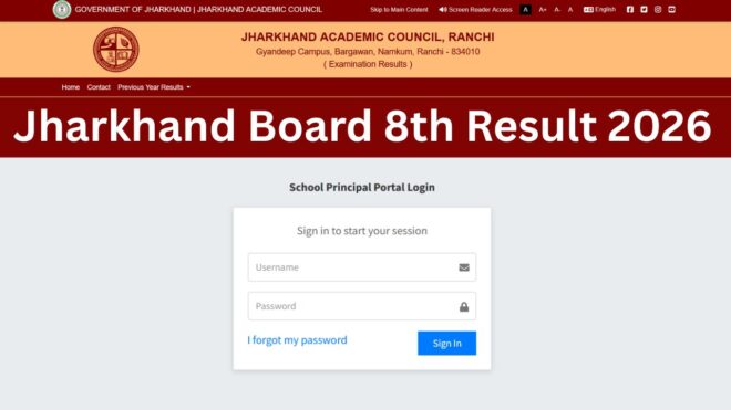 Jharkhand Board 8th Result 2026: झारखंड अधिविद्य परिषद (JAC) द्वारा 8वीं बोर्ड का रिजल्ट 16 अप्रैल को जारी कर दिया गया है. झारखंड बोर्ड आठवीं कक्षा का रिजल्ट (JAC 8th Result 2026) झारखंड अकादमिक काउंसिल की ऑफिसियल वेबसाइट- jac.jharkhand.gov.in और jacresults.com पर अपलोड किया गया है. आठवीं कक्षा का रिजल्ट स्कूल प्रिंसिपल आईडी द्वारा चेक किया जा सकता है. रिजल्ट चेक करने के लिए यूजर नेम और पासवर्ड की आवश्यकता रहेगी. आपकी सुविधा के लिए हमने नीचे रिजल्ट चेक करने का डायरेक्ट लिंक दे दिया है.