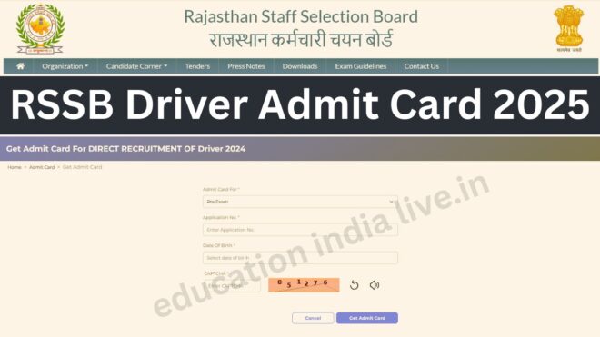 RSSB Driver Admit Card 2025 Release Date: राजस्थान कर्मचारी चयन बोर्ड (RSSB) द्वारा ड्राइवर भर्ती परीक्षा के प्रवेश पत्र 20 नवंबर को जारी कर दिए जाएंगे. एडमिट एडमिट कार्ड का लिंक यहां उपलब्ध करवा दिया जाएगा.